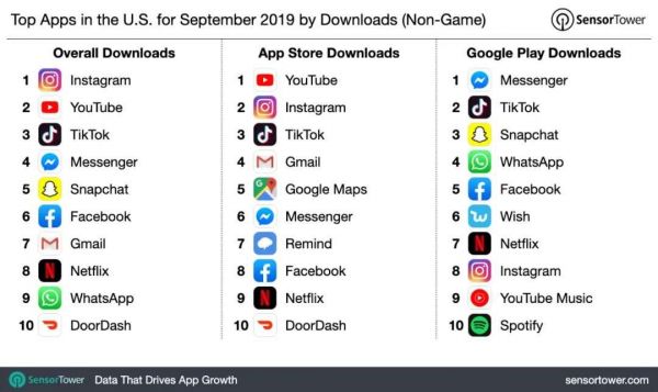 注:2019年9月,美国非游戏类APP下载量排行榜(来源:Sensor Tower)