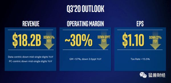 尽管第二季度的数据非常出色,但英特尔对第三季度的预测有点让人失望。英特尔预计第三季度营收同比下降5%,营业利润率下降6%。