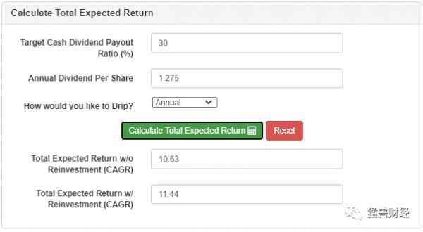 考虑到英特尔股息规模较大,不进行股息再投资的预期总回报率为10.63%的复合年增长率,而进行股息再投资的预期总回报率为11.44%的复合年增长率。