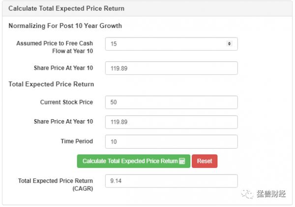 因此,如果有人以当前50美元的价格购买英特尔,并持有10年,他/她可以预期股价复合年增长率为9.14%。