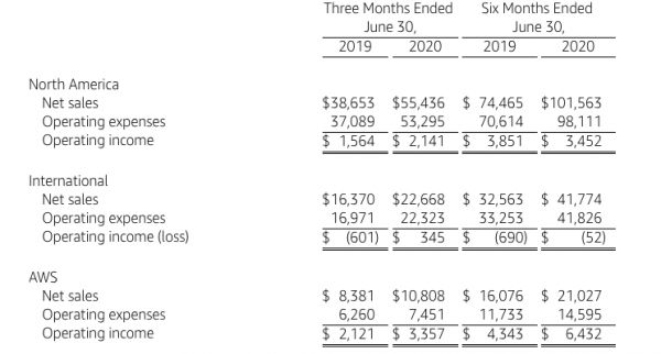亚马逊发布的 2020 财年第二季度财报显示,公司取得的净销售额为 889 亿美元,较上年同期的 634 亿美元增长 40%,超过市场预期的 819 亿美元。亚马逊利润的最大来源——AWS 云计算业务收入 108 亿美元,同比增长 29%,略低于市场预期。