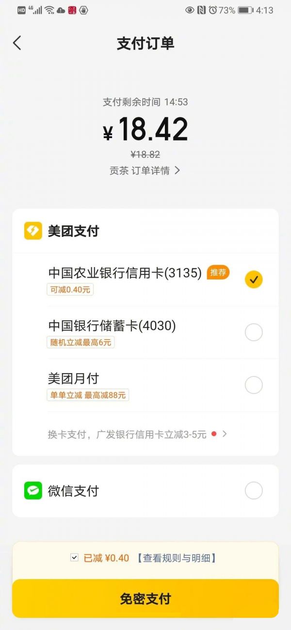 早在去年,美团和饿了么就开始出现“折叠”支付方式的情况,不少用户所说的找不到支付宝支付,也只是没有发现被折叠而已,直至今年,开始陆续在某些用户的美团中出现直接取消了支付宝的现象。