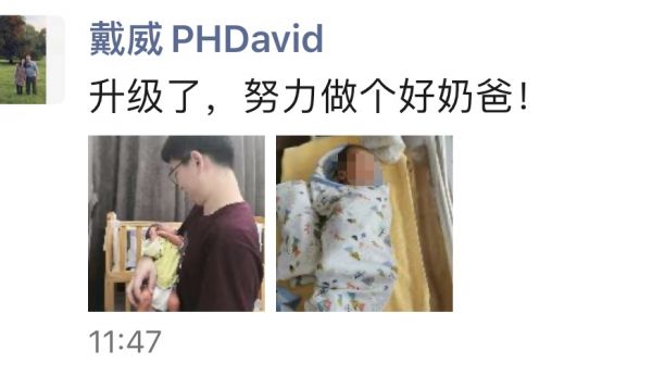 网易科技讯 7月31日下午,ofo创始人戴威今日在朋友圈透露,自己已为人父,要努力做个好奶爸。
