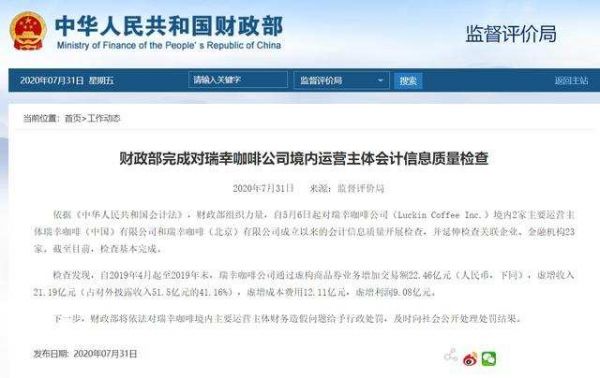 财政部认定瑞幸虚增收入21.19亿元,市场监督总局正在处置违法行为