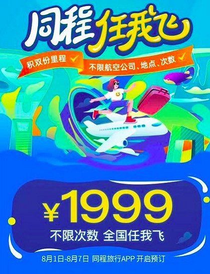 1999元无限次飞全国 “同程任我飞”刚要发售突然叫停