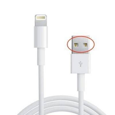 一般兼容USB接口的充电器,D+和D-两个引脚是悬空的,任何设备只要插上这样的充电器,就会从5V和GND两个引脚获得电能。而苹果的充电器则在D+和D-两个数据引脚上增加了分压电阻,使充电的设备能够在充电时,从这两条数据线上读到两个电压。