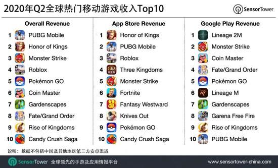 2020年Q2全球热门移动游戏收入Top10
