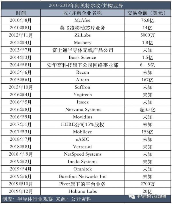 这些年来,英特尔除了坚持做CPU以外,也在通过并购的方式探索各个前沿领域,不同于传统半导体公司,基本只并购同行。英特尔这个优雅的巨头对跨界非常感兴趣,收购领域包括无线技术,数据中心芯片以及人工智能与自动驾驶等新兴领域。
