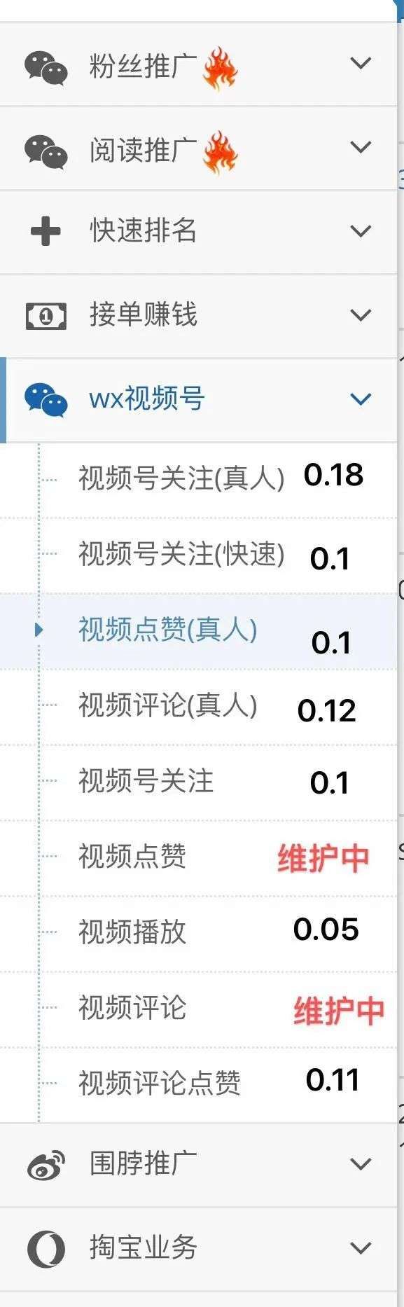此外,第一波吃到视频号红利的可能是黑灰产,他们通过售卖增粉、点赞评论服务获得收入。一推广人员称,视频号加粉价格每天随着市场波动,如果买粉的人多,价格就会上涨。不同类型的粉丝对应不同价格,真人关注是0.18/人,普通关注0.1/人。视频真人点赞0.1/个,视频真人评论0.12/个,视频播放0.05/次。长期需要“合作”的话,还可以申请购买一个后台自己使用,后台价格为1599元(活动价)。这意味着,无数点赞十万加的热门视频,可能都是花钱刷出来的。