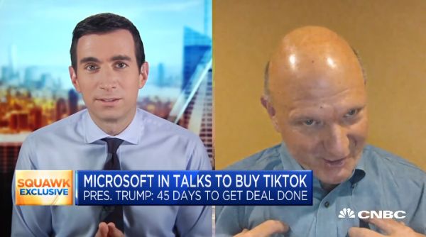据美国消费者新闻与商业频道(CNBC)8月3日报道,作为微软最大的股东及前CEO,鲍尔默在CNBC节目中表示:“很明显,(交易)取决于价格。”