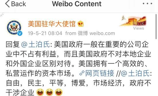 近日,网友在美国驻华大使馆微博翻出一篇推文。