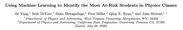 他们发表了一篇有趣的论文:《Using Machine Learning to Identify the Most At-Risk Students in Physics Classes》(《使用机器学习来识别物理课上,最有挂科风险的学生》)。