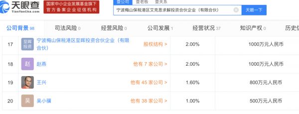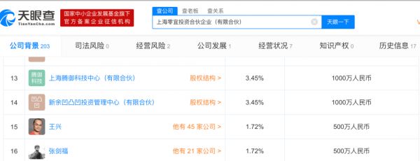 除了XVC,王兴还是上海零宜投资合伙企业(有限合伙)的股东,持股比例为1.72%。