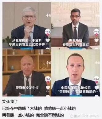 TikTok很有意思。TikTok他代表另外一种领先,就是商业模式领先。这个东西对美国来讲其实影响也挺大的,而且这个模式已经让小扎——扎克伯格急了。看到没有?小扎现在压力很大,就是TikTok,而且他准备偷TikTok的模式,所以很了不起。