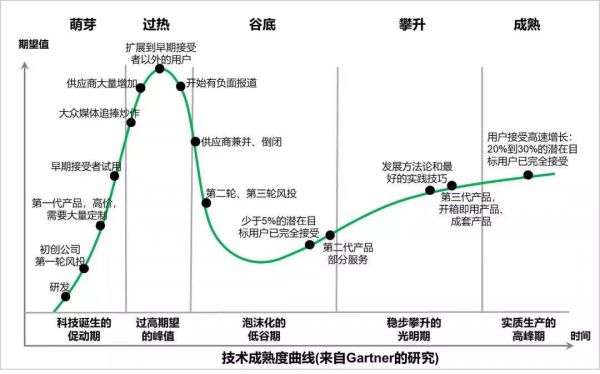 从技术成熟曲线来看,目前的AI技术正处于谷底期与攀升期的临界点。