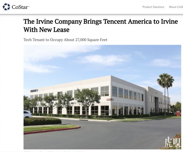 @虎嗅【腾讯租下加州2400平方米办公楼】据美国商业房产数据网站Costar报道,腾讯美国与房地产公司尔湾公司签约,租下了一幢位于加州尔湾市的办公楼,总面积约2430平方米。这一合同是第二季度市场上金额最高的办公室租赁合同之一。