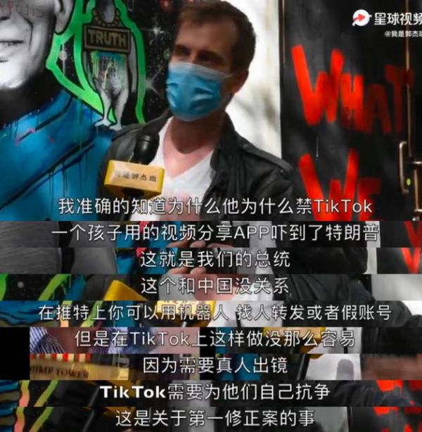据博主@我是郭杰瑞透露,有一位美国演员长期在纽约特朗普大楼下抗议。谈及特朗普封禁中国TikTok的原因时,他表示: