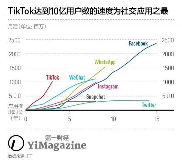 2020年,TikTok的全球月度活跃用户数已高达8亿。达到这一数量级,TikTok用了三年,而YouTube花了六年,Instagram花了七年,Facebook则花了十二年。外加Topbuzz和Lark等产品,字节跳动海外的用户已经遍布北美、欧洲和亚洲等180个国家和地区,似乎没什么能让这家高速列车停下来。
