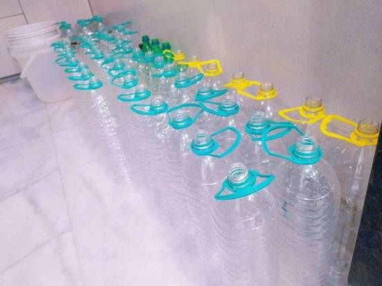 最不方便的是每天只有半小时的时间有水,所以我必须把所有的桶和瓶子装满水,我大概有 20 多个桶,其中有个是 10L 的,洗澡、洗衣服、洗碗和煮饭等都要用这些水。水都要省着用,如果第二天不来水,那就更惨了。