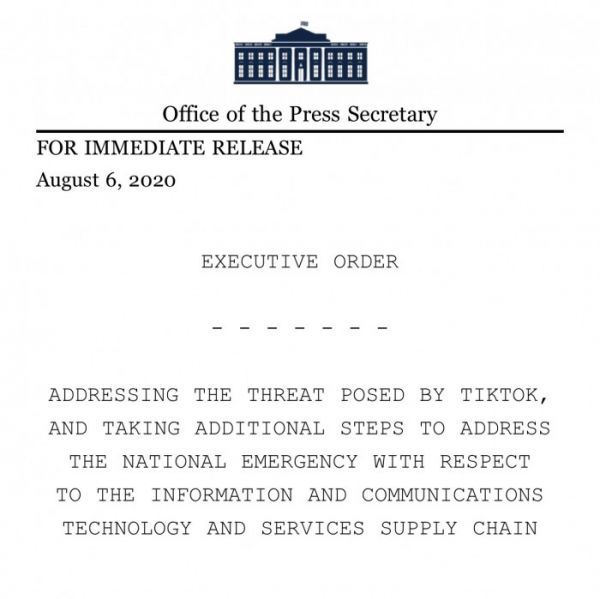 据外媒The Verge报道,美国总统特朗普刚刚签署了一项新的行政命令,将阻止与TikTok的母公司字节跳动(Bytedance)的所有交易,以努力 “解决信息和通信技术供应链方面的国家紧急情况”。