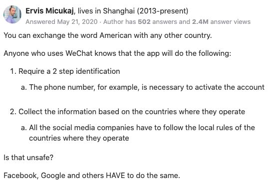 而对于有些美国人来说,微信几乎是他们与中国朋友交流的唯一途径。这一禁,不知道还怎么联络了。