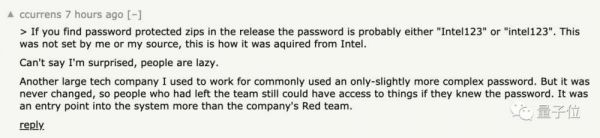 黑客在与Kottmann对话中表示,英特尔员工的安全意识似乎也不够,他们把压缩包密码设置成“Intel123”或“intel123”,从而能够轻松被破解。