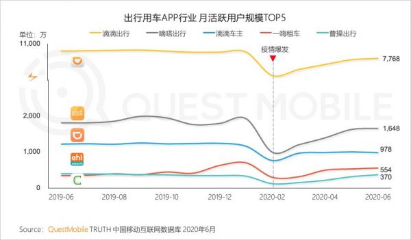 据 QuestMobile 数据显示,在 2020 年 6 月,滴滴出行月活跃用户数量(MAU)达到 7768 万,是排名第二的嘀嗒出行的 3.7 倍。滴滴出行智能控制首席科学家唐剑透露,滴滴在去年 7 月注册用户数达到了 5.5 亿,年运送量为 110 亿次,平均每天 3000 多万次。