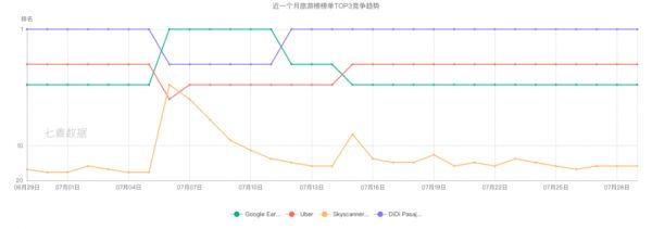 智利近一个月旅游类榜单 TOP3 竞争趋势,来源:七麦数据