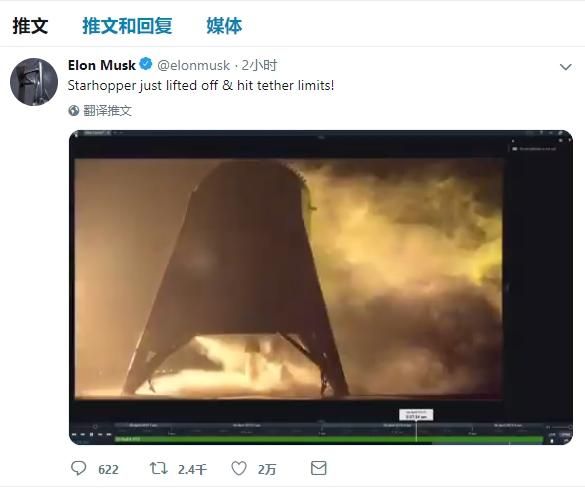 4月6日消息,马斯克发推庆祝其SpaceX测试星际飞船原型“星虫”成功点火升空。据悉,SpaceX正处于开发星际飞船的初期阶段,此次成功升空的原型测试飞船为Starhopper(星虫),它的目的是测试、验证最终版星际飞船Starship的技术和设计。
