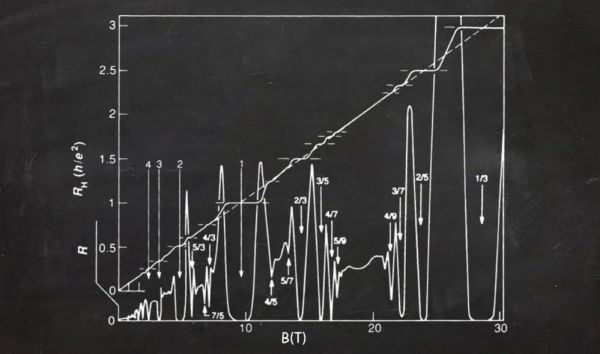 1982年,实验物理学家霍斯特·施特默(Horst Störmer)和崔琦(Daniel Tsui )发现了更令人疑惑的现象,他们在更低的温度和更强的磁场下,发现霍尔电导会以先前观察到的结果的分数倍量子化。这就好像电子以某种方式分裂成了更小的粒子,每个粒子都携带了电子的一小部分电荷。