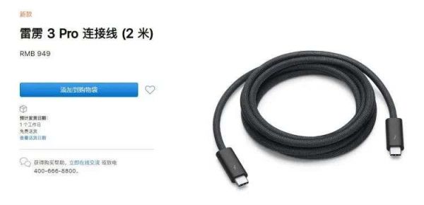 苹果官方商城近日上架了一根数据线,官方名称“雷雳3 Pro”,售价949元。