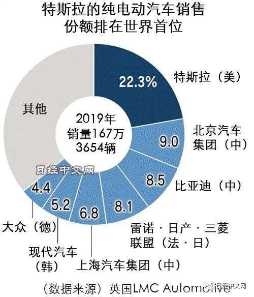 不过,虽说特斯拉排在全球纯电动汽车首位,但2019年的全球销量仅为37万辆,只有丰田和大众的30分之1左右。特斯拉的股票根据市场预期平均值计算的预期市盈率(PER)高达约170倍,和丰田(17倍)、大众(15倍)相比达到极高水平。