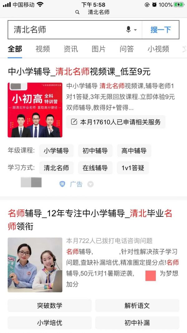 其实不难发现,大肆宣传清北名师的机构几乎都在线上。无论真假,这样的机构都在用老师的实力说话。课程开启后,老师需要接受屏幕后无数学生、家长的点评。如果用户体验尚可,那么是不是清北名师就已经不重要了。同样的道理也适用于教培机构此前关于人大附、衡水中学等等知名公办学校老师的宣传标签。