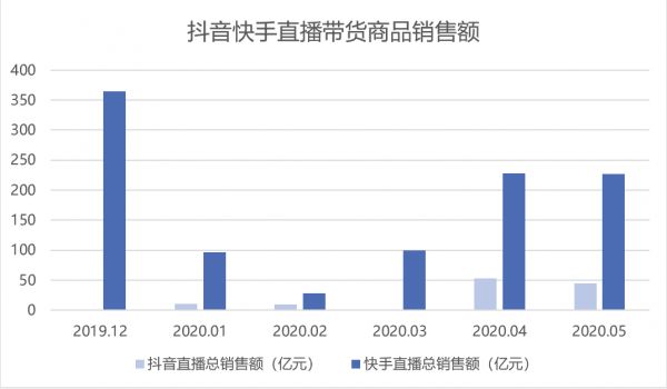 另一方面,直播主播带货商品总销售额分布中,抖音主播直播共带货119亿元,4月份开始主播直播带货总销售额增速快;快手主播直播共带货1044亿元,1、2月有所下降,3月开始增长,4、5月单月突破200亿元。呈现出抖音用户爱送礼,快手用户爱剁手的特质。