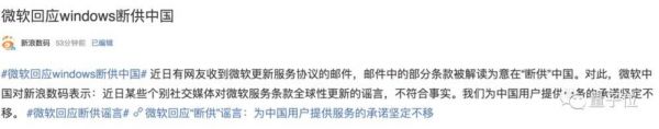 所以,“微软断供中国不负责”的表述,让很多网民和媒体认为这是可能出现的事实,谣言就这样传开了。