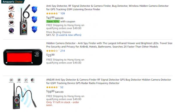 不过,随着监视技术的发达,反监视的技术也逐渐得到发展。在亚马逊进行搜索,可以得到很多相关的隐蔽摄像头检测工具,其中大都是基于电信方面的技术。
