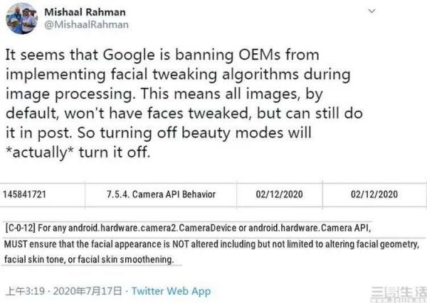 前段时间,我们三易生活曾撰文介绍了谷歌在智能手机“反美颜”方面的一些动作。简单来说就是他们认为过度追求美颜不利于身心健康,因此作为安卓生态领头羊的谷歌就正在准备通过Android相机API的更新,从技术上给美颜爱好者制造一些麻烦。