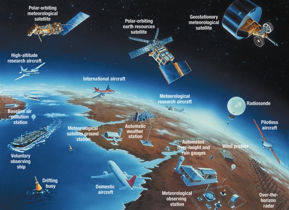 目前,太空中有全球 1000 多颗气象卫星,可提供风雨、温度等的大量气象数据,地球上还有数十万个国家级和企业级气象站,它们都在不断收集实时数据。