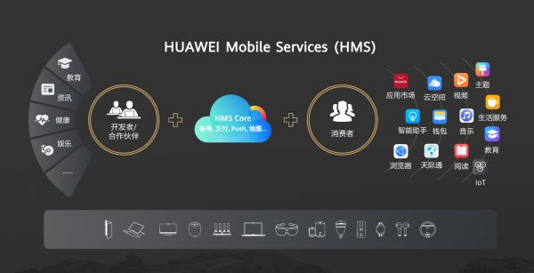 8 月,余承东宣布,“华为 P40 手机已经开始在全球销售,全面搭载了 HMS。华为的应用市场是全球三大应用市场之一,我们想承载中国的应用、承载全球的应用。我们已经打造了几十个 Kit,为应用开发者集成,替代 Google GMS,突破美国的封锁,成为全球的领导者。”