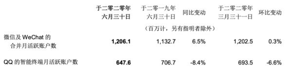 因此对于腾讯来说,微信(包括WeChat)用户情况是支撑广告收入的活水。第二季度微信及WeChat的MAU数为12.06亿人,环比增长0.3%。