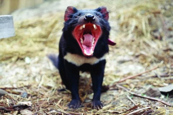 它们以性情暴躁著称,受到威胁、争夺配偶或抢占食物时极为凶猛。体型虽然只有小狗那么大,但巨大的头颅、锋利的牙齿、强壮的下颌让它们拥有哺乳动物中数一数二的咬合力,可以轻松咬碎对手或猎物的筋皮骨肉。而它们的咆哮声更是令人听了毛骨悚然,以至于最早见到袋獾的欧洲人心惊胆战地给它们起了一个英文名:Tasmanian devil(塔斯马尼亚恶魔)。