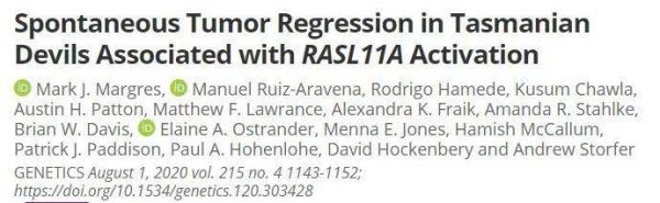 [1] Mark Margres et al., (2020) Spontaneous tumor regression in Tasmanian devils associated with RASL11A activation. Genetics. DOI: http://dx.doi.org/10.1534/genetics.120.303428