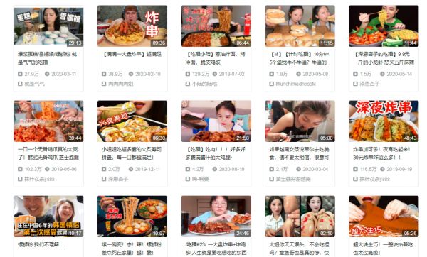 某视频平台能检索到大量的吃播内容