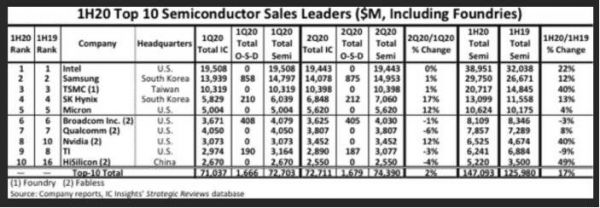 两天前,IC Insights 发布全球十大半导体厂商销售排名,华为海思首次进入前十强,不过,这份成绩注定是短暂的,禁令之后,华为和海思的路都会非常艰难。