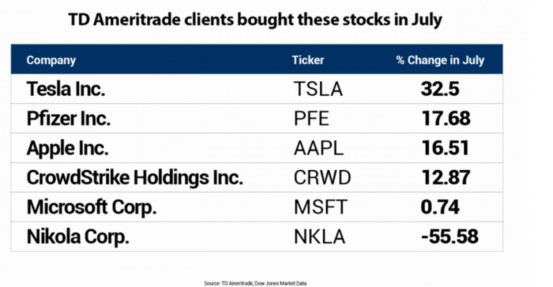 其中,最受欢迎的股票中特斯拉继续高居榜首,其次是包括特斯拉、辉瑞、苹果、Crowdstrike Holdings、微软和尼古拉。