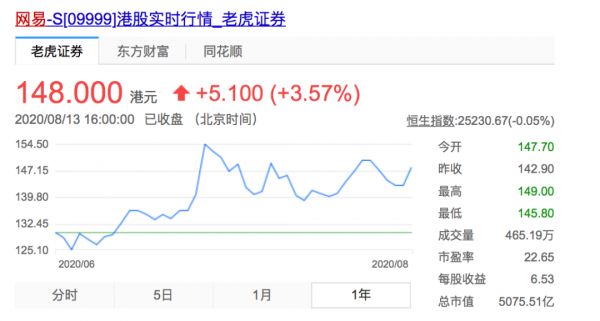从资本端来看,市场对于网易的整体预期是很好的。延续第一季度的上升势头,网易当日股价上涨3.57%,市值已逾5000亿港元,相较于去年同期市值已增长74%,在中国互联网公司里属于当之无愧的佼佼者。