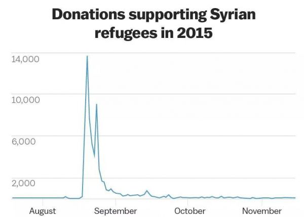 人们对叙利亚难民的捐款大幅增加(来源:PNAS)