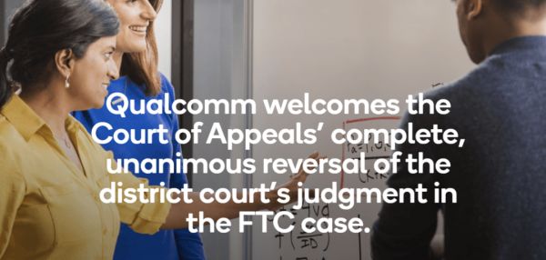 在相继解决苹果、华为耗时多年的专利纠纷后,高通又成功地推翻了美国联邦贸易委员会(FTC)之前对高通「滥用垄断权力」、「支配市场」的裁决。