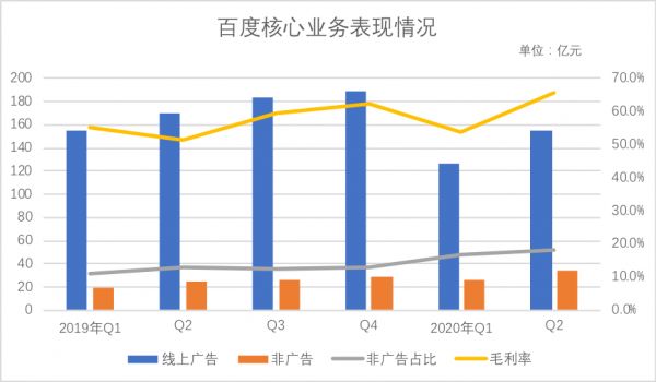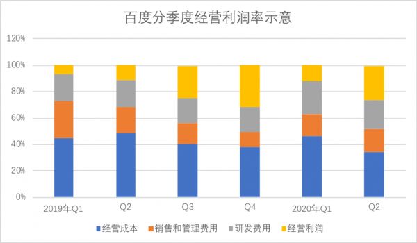 我们在Q1财报时曾分析,由于新兴业务尚处于培育期,百度的毛利率与广告业务的起伏有着密切关系,也就是说,新兴业务虽然提高了总营收的表现能力,但盈利性考虑又需要广告业务“供养”,在2019年,新兴业务占比大幅提高,广告业务则受到大环境强烈冲击,这是否会影响百度盈利性呢?