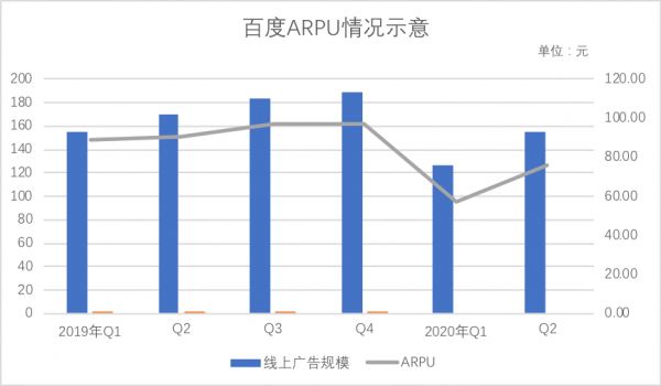 百度最近几个季度一直在强调手百DAU的高速增长,对于一个广告为主的平台,DAU的增长确实是一大利好,但我们仍然需要通过ARPU的考量对DAU的质量进行深一层分析,见下图。